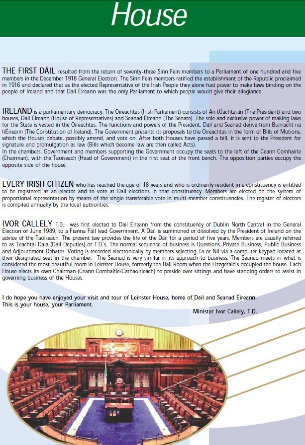 From 2003…Ivor Calellys “History Of Leinster House” Leaflet » ivorleinster3