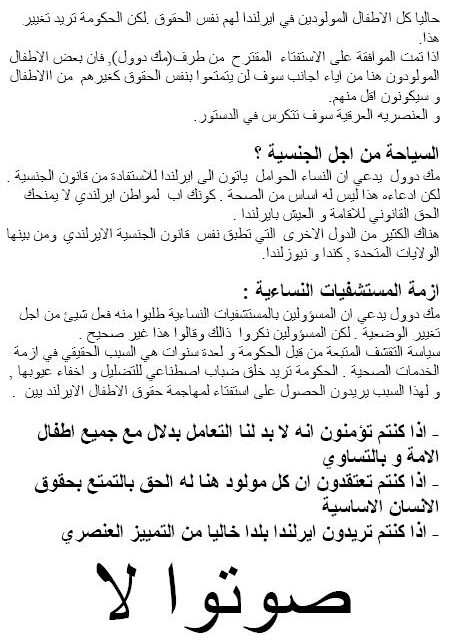 Leaflet in Arabic urging a No vote in the Citizenship Referendum of 2004 September 26, 2010