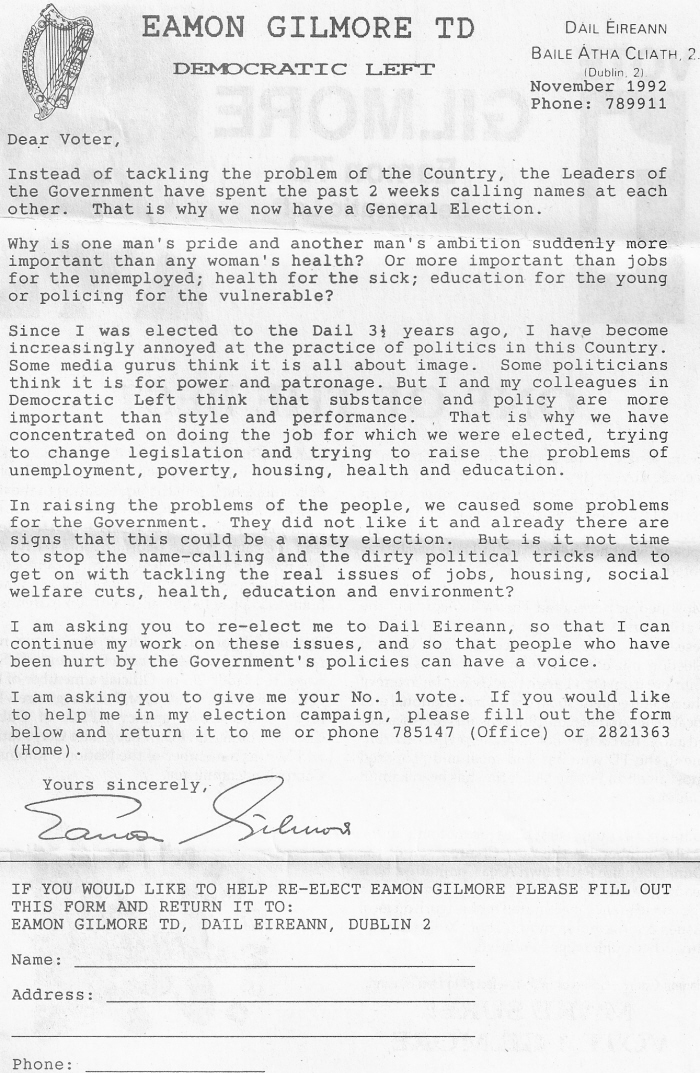 “..Substance and policy are more important than style and performance”- Eamon Gilmore 1992 Letter to Voters » gilmoresubstance02