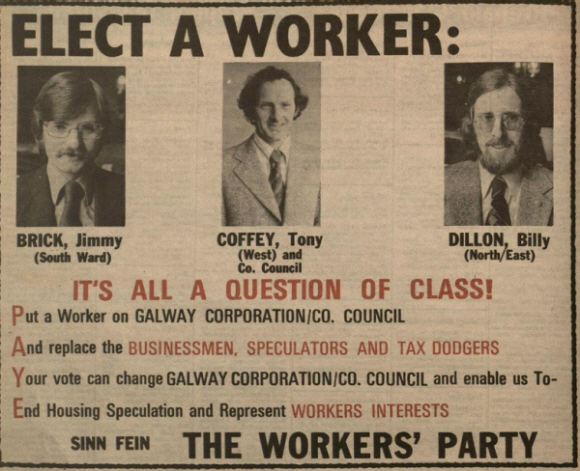 Jimmy Brick, Tony Coffey,Billy Dillon -Sinn Fein The Workers Party -1979 Local Elections Galway » galway79