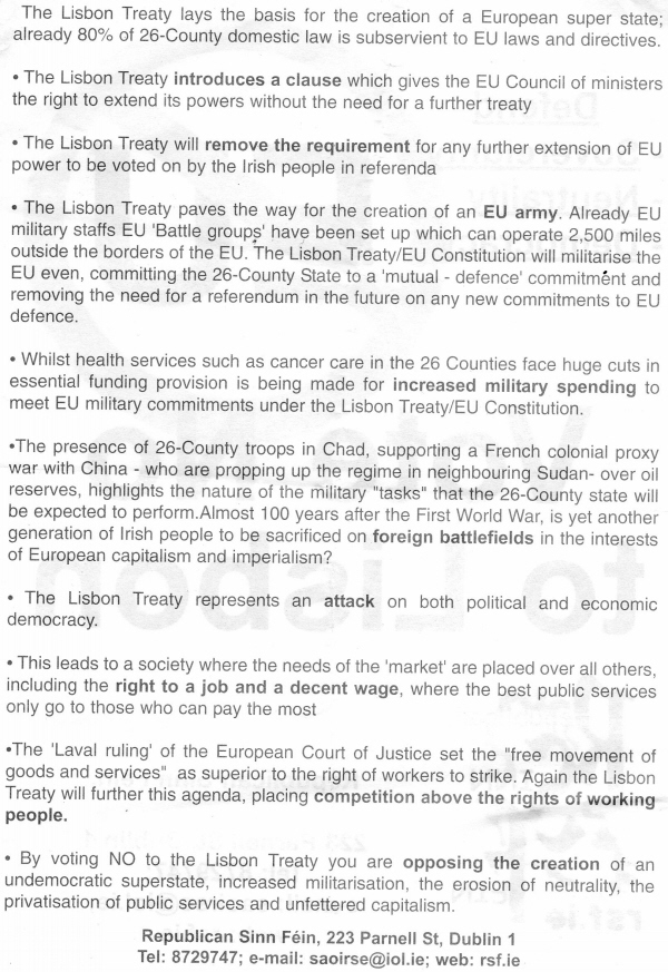 “Defend Sovereignty, Neutrality,Democracy” – Republican Sinn Fein – No To Libon Leaflet » RSFLisbonBack