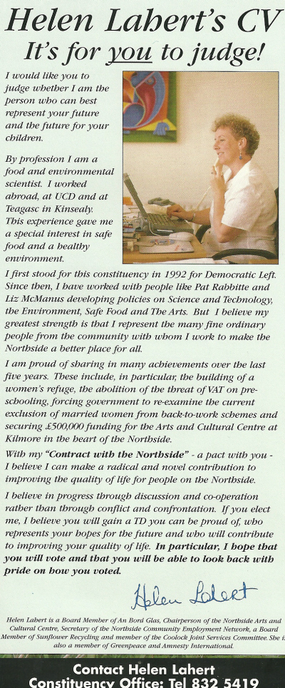 “My Contract with The Northside” -Helen Lahert -Democratic Left -1997 Election Dublin North Central » hlahert97b
