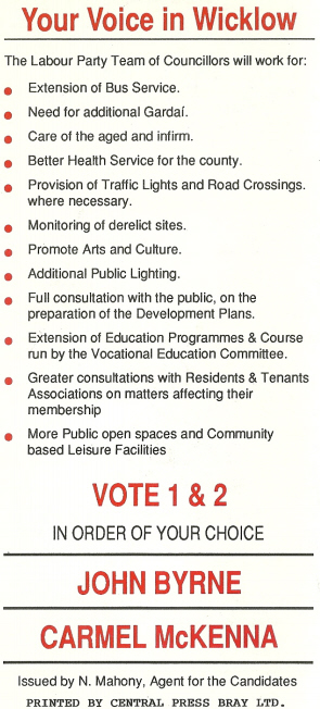 John Byrne, Carmel McKenna -Labour 1991 LE Bray » bray1991c