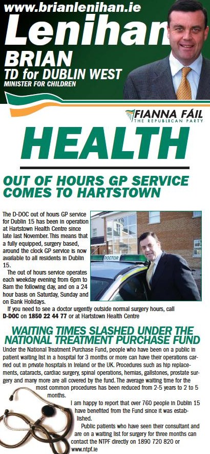 From the 2007 General Election Brian Lenihans ‘Health’ Newsletter » blenihanhealth1