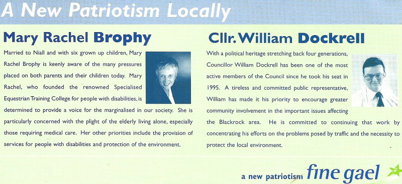 Mary Rachel Brophy , William Dockerell -Fine Gael -1999 LE Blackrock » mrb99a