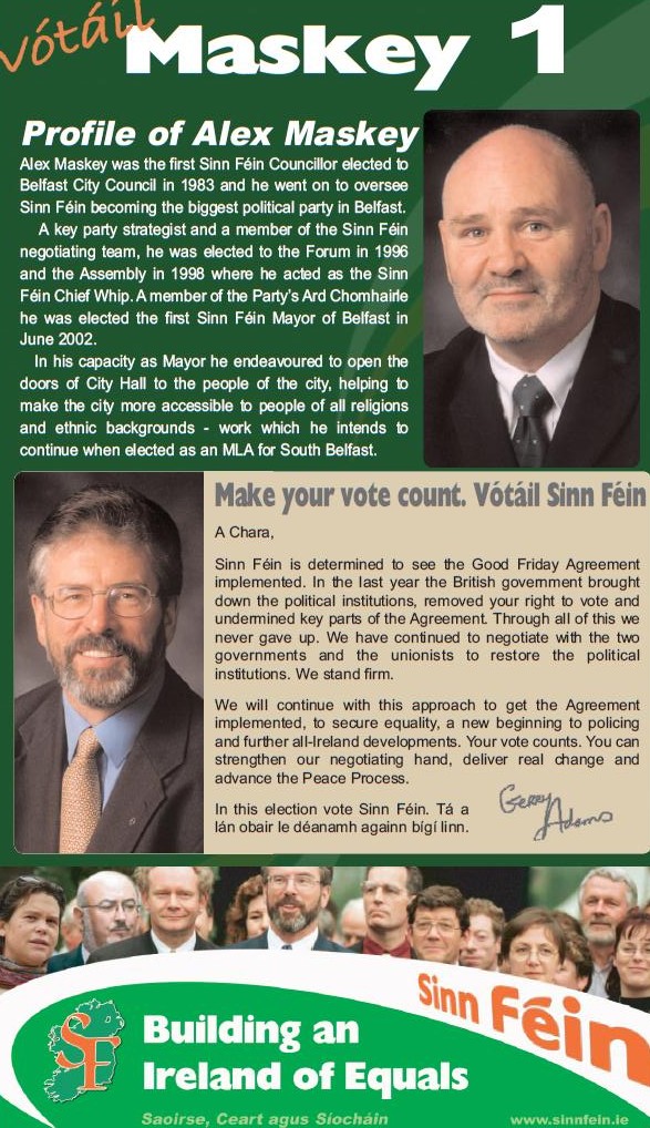 Alex Maskey – Sinn Fein – South Belfast 2003 Assembly Elections » amaskey03a
