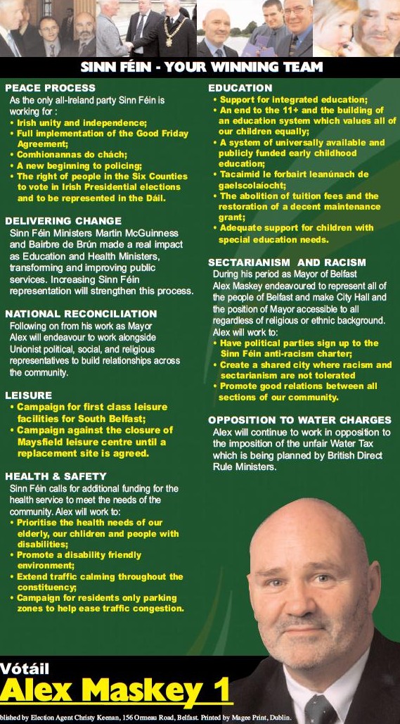 Alex Maskey – Sinn Fein – South Belfast 2003 Assembly Elections » amaskey03b