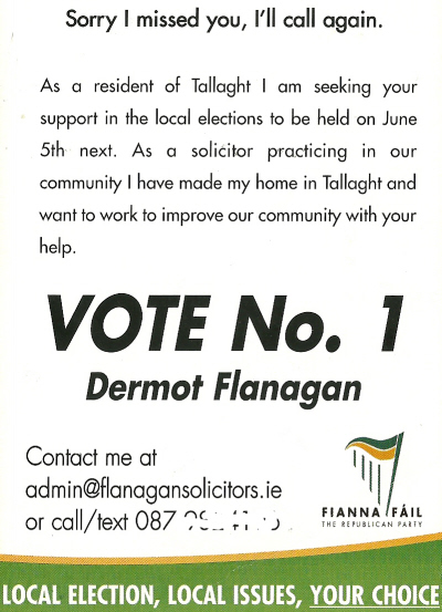 “Sorry I missed You” -Dermot Flanagan -Fianna Fail -2009 LE Tallaght South » dflanagan2