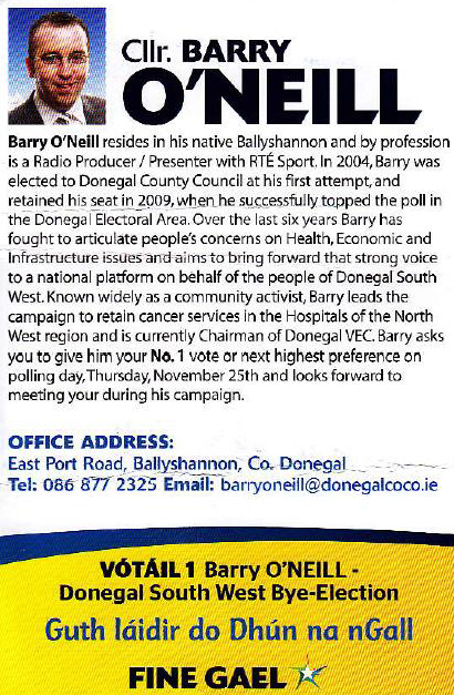 “Sorry I Missed You” from Barry O’Neill -Fine Gael 2010 Donegal South West By-Election » boneillsimu2