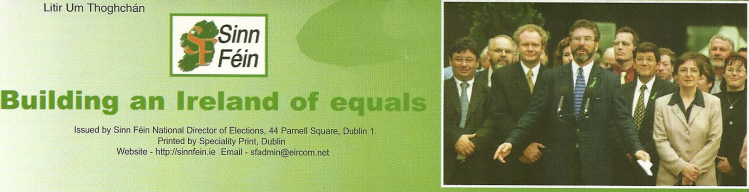 From the 2002 General Election a leaflet for Sinn Fein candidate Niamh Hogg running in Westmeath. She polled 1,185 votes and failed to win a seat. She later stood without success in the 2004 Local Elections.