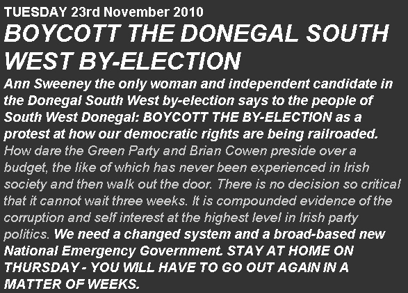 Boycott The Donegal South West By-Election -Ann Sweeney -Independent /New Island Party » boycott