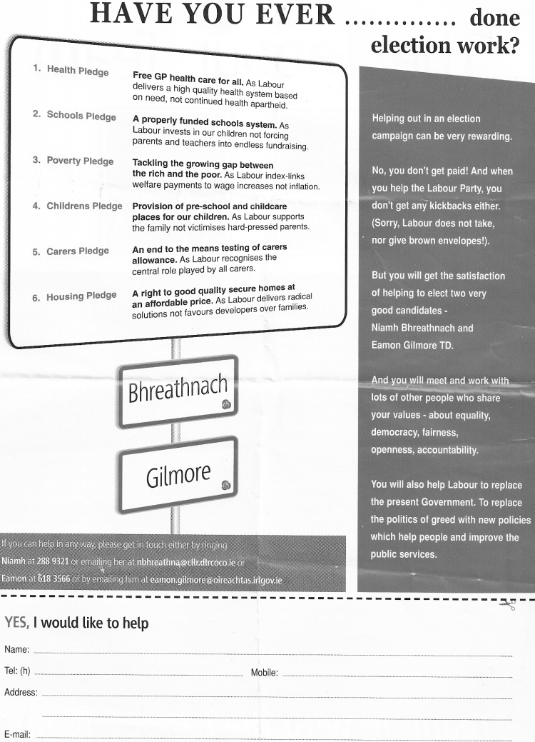 Leaflet for Eamon Gilmore, Niamh Bhreathnach -Labour -2002 GE Dun Laoghaire » scan0038