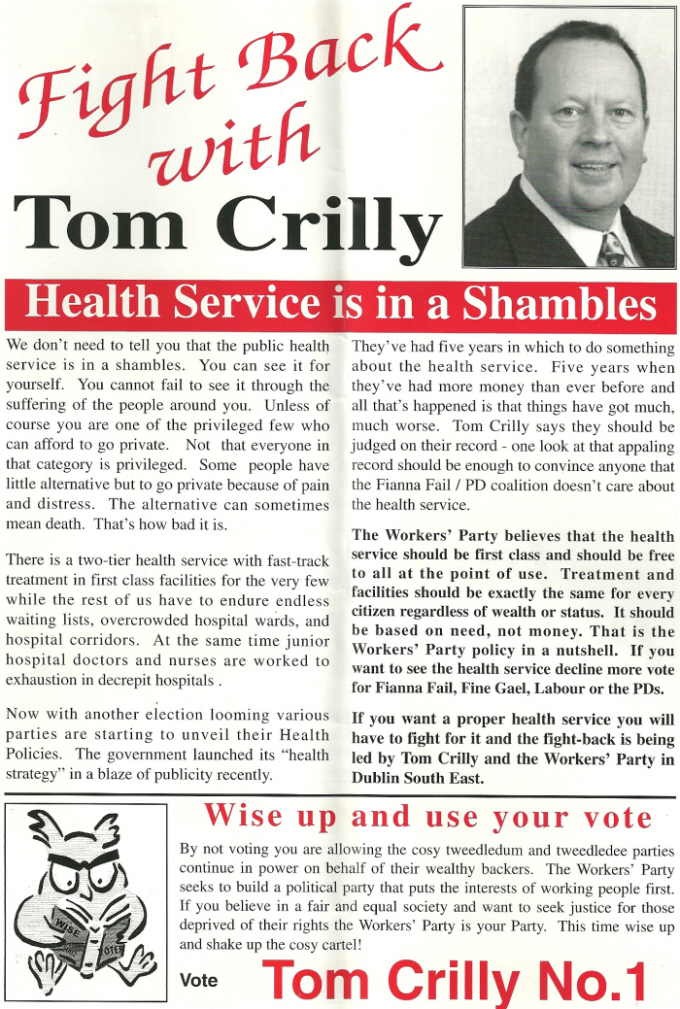 Newsletter from Tom Crilly -Workers Party- 2002 General Election Dublin South East » tcrilly02a