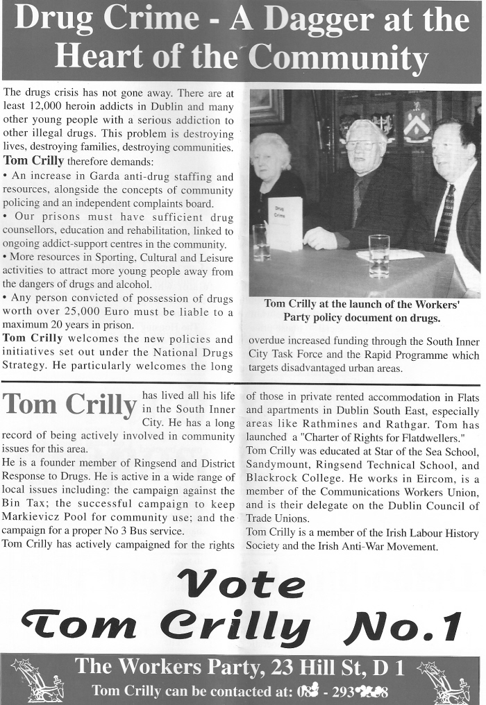 Newsletter from Tom Crilly -Workers Party- 2002 General Election Dublin South East » tcrilly02d