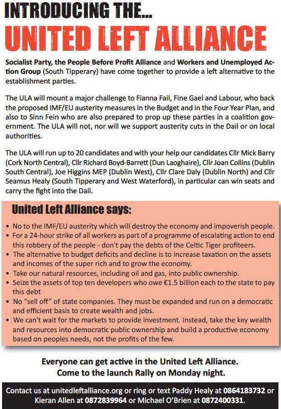 Leaflet from The United Left Alliance (ULA) » ULAleaflet