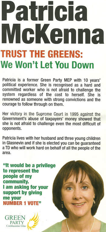 Patricia McKenna Election leaflet from the 2007 General Election ….”Trust The Greens: We Won’t Let You Down” » GPletdown07b1