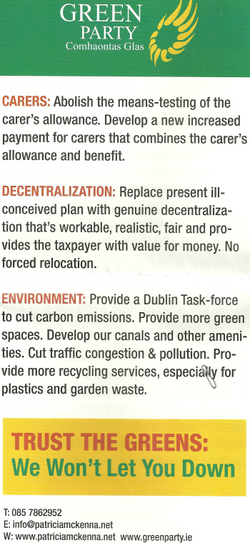 Patricia McKenna Election leaflet from the 2007 General Election ….”Trust The Greens: We Won’t Let You Down” » GPletdown07e