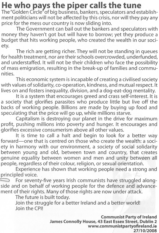 A 2008 “Celtic Nightmare” Leaflet from the Communist Party of Ireland » celticnightmare2