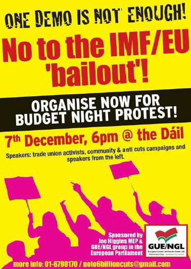 Leaflet for “No To The IMF/EU Bailout” Budget night protest 7th December 6pm @ the Dail » 1demonotenough