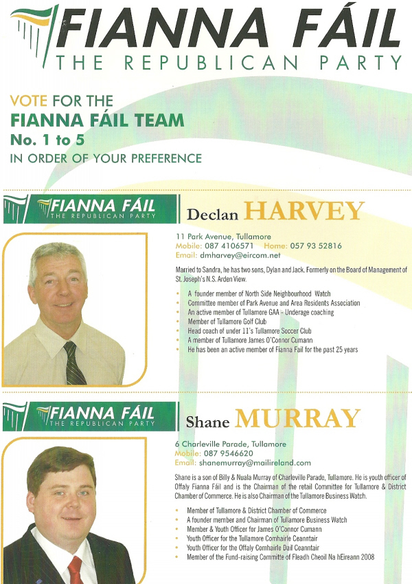 Leaflet for Fianna Fail candidates Tullamore Town Council and Offaly County Council -2009 Local Elections » ttc09b