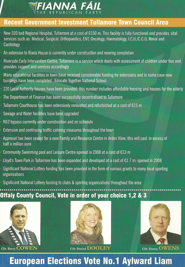 Leaflet for Fianna Fail candidates Tullamore Town Council and Offaly County Council -2009 Local Elections » ttc09d