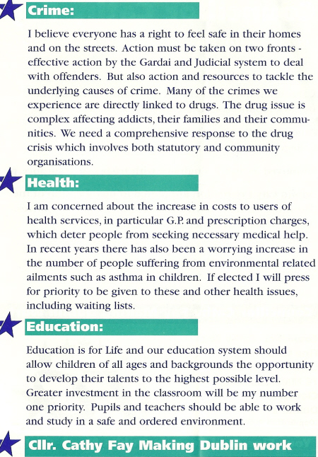 Leaflet for Cathy Fay -Fine Gael -1997 GE Dublin North Central » cfay97c