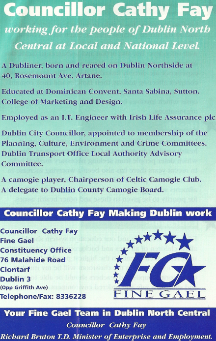 Leaflet for Cathy Fay -Fine Gael -1997 GE Dublin North Central » cfay97d