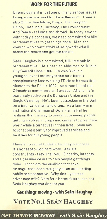 “Get Things Moving- with Sean Haughey” -Fianna Fail -1997 GE Dublin North Central » shaughey97b