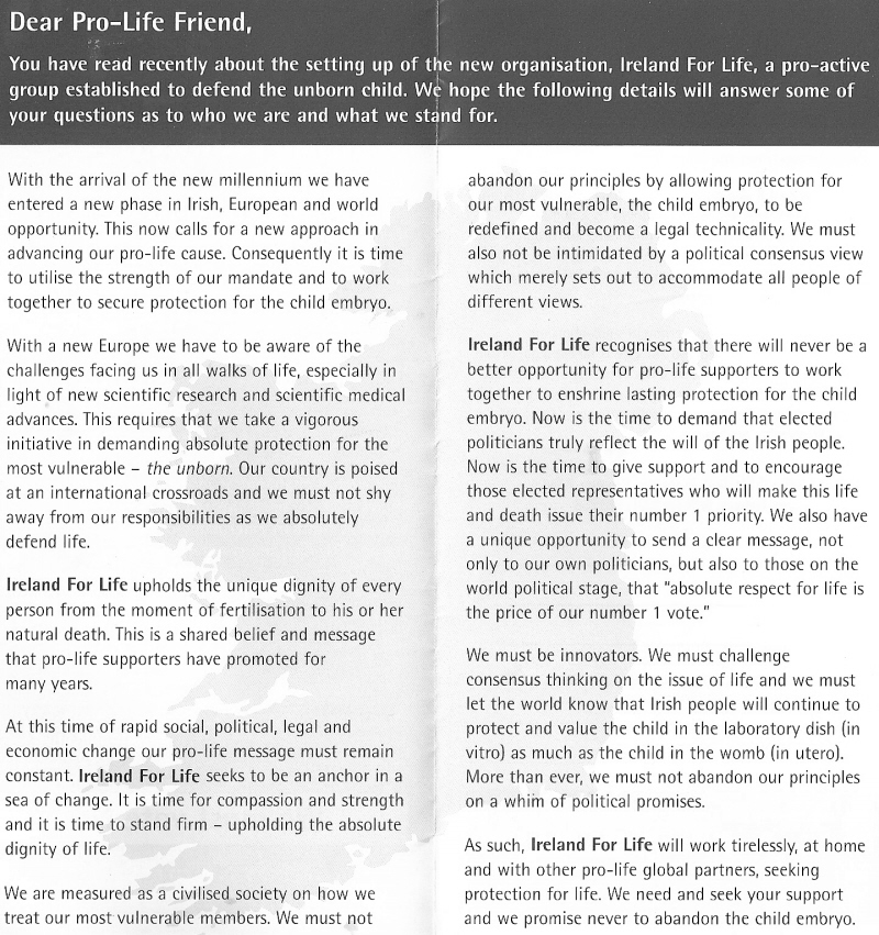 Leaflet from ‘Ireland For Life’ -Vote No -2002 Abortion Referendum » ire4life02b1