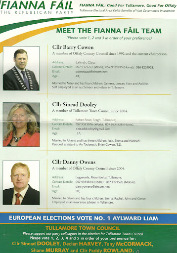 […] I don’t think they’ll be using the above which was used on a 2009 leaflet for the FF Tullamore team of Taoiseachs Brother Barry Cowen , Taoiseachs personal Assistant Sinead Dooley and Danny Owens. Full Leaflet HERE […]