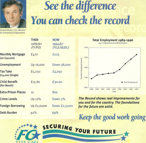 “See the difference -You can check the record” -Richard Bruton 1997 Election Leaflet with the Rainbow Governments record » rbruton97a1