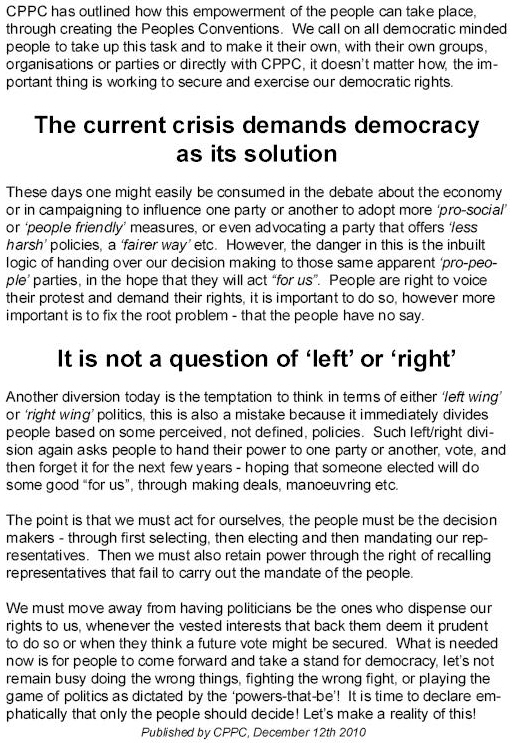 A Leaflet from An Chomhdháil Phobail | The People’s Convention (CPPC) produced for a meeting in Cork in December. Their Website has a report from the meeting advertised here.