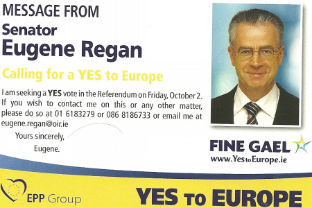 “YES TO RECOVERY – YES TO EUROPE” -Flyer from Eugene Regan Fine Gael Lisbon Treaty Referendum » reganyes2