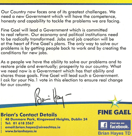 Flyer from Brian Hayes -Fine Gael -2011 General Election Dublin South West » bhayesflyer11b