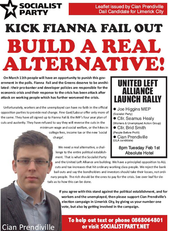 “Kick Fianna Fail Out” Leaflet from Cian Prendiville -Socialist Party -Limerick City -2011 GE » cianp1