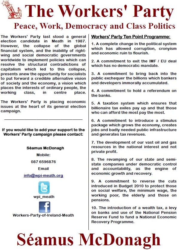 Leaflet for Seamus McDonagh -Workers Party -Meath West 2011 GE » smcdonagh11b