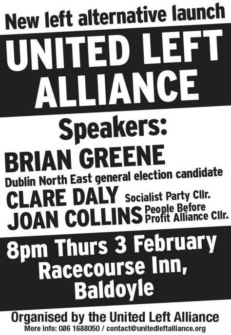 Flyer for Brian Greene- Dublin North East United Left Alliance Launch 3rd February » uladublinnortheast