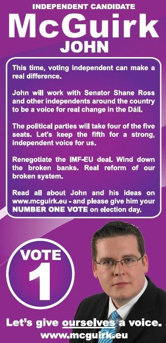 Flyer for John McGuirk- Independent – Cavan Monaghan-2011 General Election » jmcguirk1