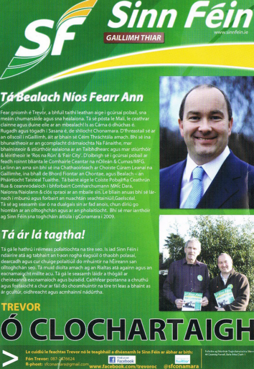 Leaflet for Trevor O Clochartaigh- Sinn Fein-Galway West-2011 General Election » TrevorGaeilge