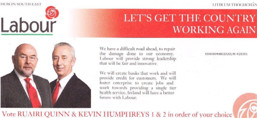 […] are turning for the better this morning though. The excellent Irish Election Literature has a copy of a cartoon leaflet for Ruari Quinn and Kevin Humphreys. Perhaps all the ‘new […]