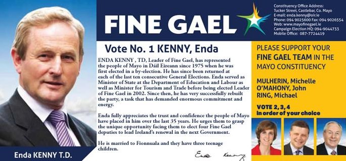 One Response to “Flyer from Enda Kenny -Fine Gael- 2011 General Election Mayo”