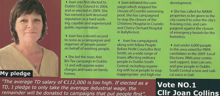 Flyer from Joan Collins-People Before Profit / United Left Alliance -Dublin South Central » jcollins11b
