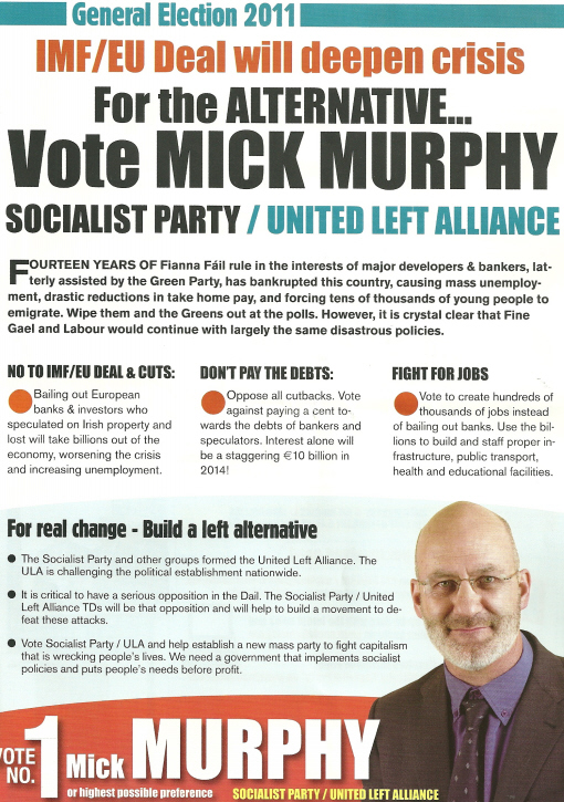 Leaflet from Mick Murphy -Socialist Party / United Left Alliance- Dublin South West » mmurphy11a