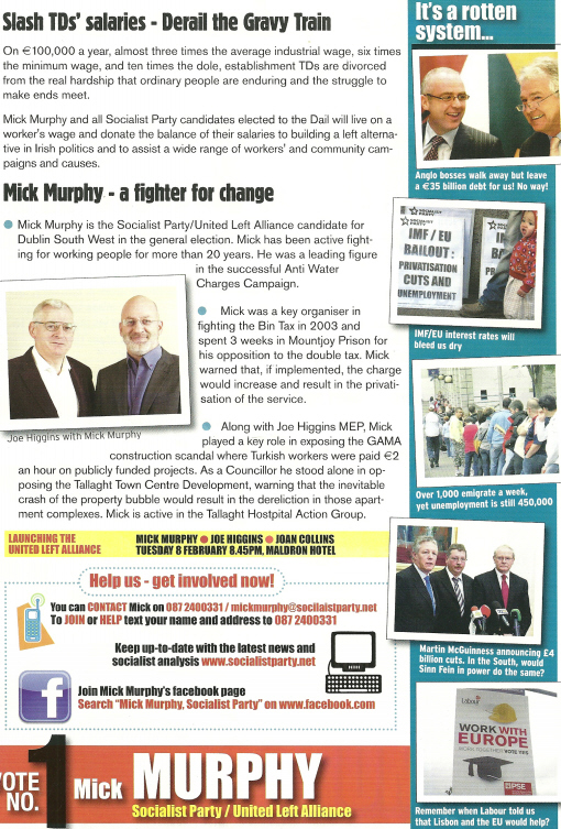 Leaflet from Mick Murphy -Socialist Party / United Left Alliance- Dublin South West » mmurphy11b