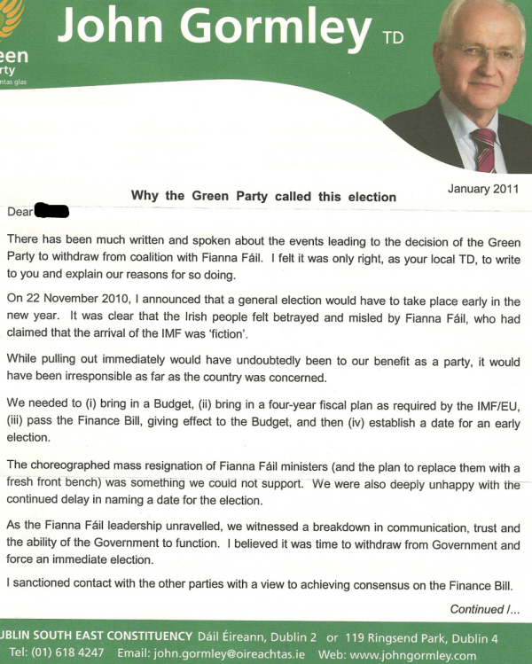 “Why the Green Party called this election” -Letter from John Gormley -Green Party- Dublin South East » gormley11letter1
