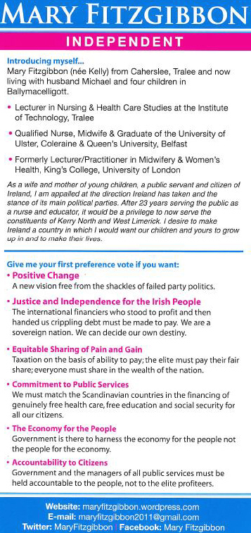 Flyer for Mary Fitzgibbon -Independent -Kerry North and Limerick West » mfitzgibbon1b