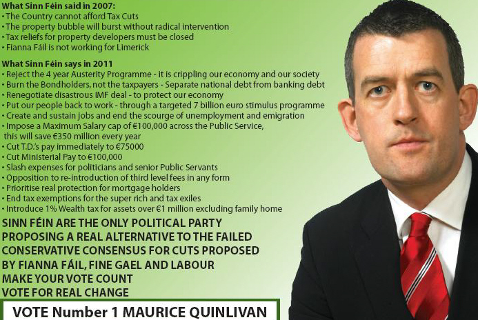 Flyer from Maurice Quinlivan- Sinn Fein -Limerick -2011 General Election » mquinlavinl11b