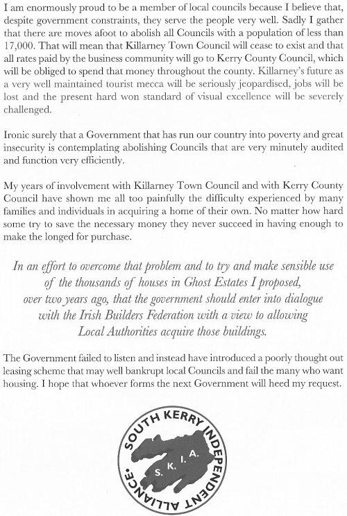 Manifesto for Michael Gleeson- South Kerry Independent Alliance -Kerry South » mgleeson11c