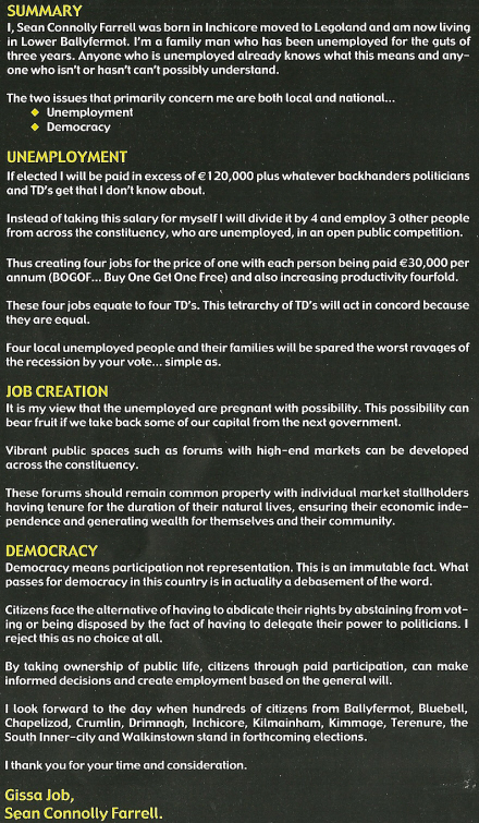 “Gissa Job” -Sean Connolly Farrell -Independent -Dublin South Central » gissa2