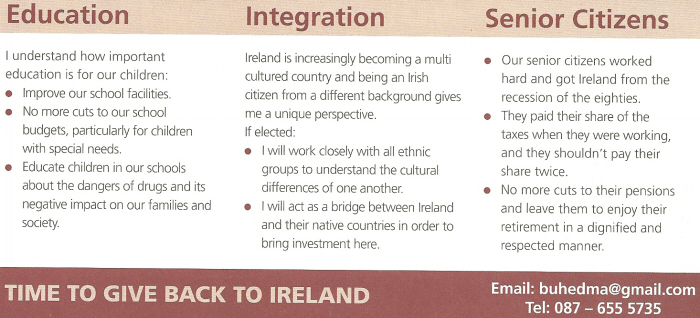 Leaflet for Hussein Hamed -Independent-Dublin South 2011 General Election » husseinhamed2